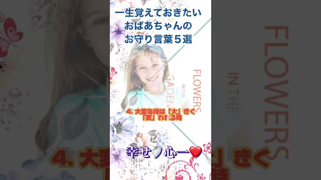 @phil0p0nnews.yahoo.co.jp/expert/article… 【一生覚えておきたいおばあちゃんのお守り言葉5選】 1.ひらがなは「あい(愛)」で始まり、「をん(恩)」で終わる 2. 綺麗な花よりも、綺麗な花を咲かせる土になりなさい 3. 2、3人に嫌われても地球にはあと80億人もいるんだよ 4. 大変な時は「大」きく「変」われる時…