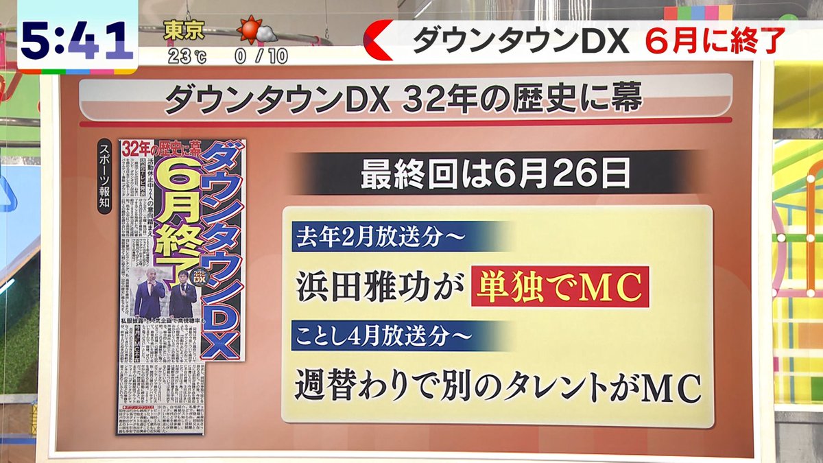 @V6OK5gR5tHp7K5m「ダウンタウンDX」終了へ、制作の読売テレビが発表、32年の歴史に幕、最終回は6月26日(スポーツ報知) #Yahooニュース news.yahoo.co.jp/articles/b7637… 最後くらい2人で出て欲しい‼️
