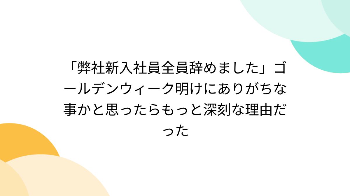 @gh_66r連休減らしてみては? GW後の「大量離職」は本当か? 実態と要因についてまとめました #エキスパートトピ(今野晴貴) #Yahooニュース news.yahoo.co.jp/expert/article…