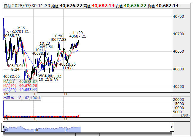 @yanta201130日の東京株式市場で日経平均株価は4日続落し、終値は前日比19円85銭安の4万0654円70銭となりました。寄り付きは米市場の好決算を受け電線株などに買いが入りましたが、上昇は続かず短時間で下落に転じました。