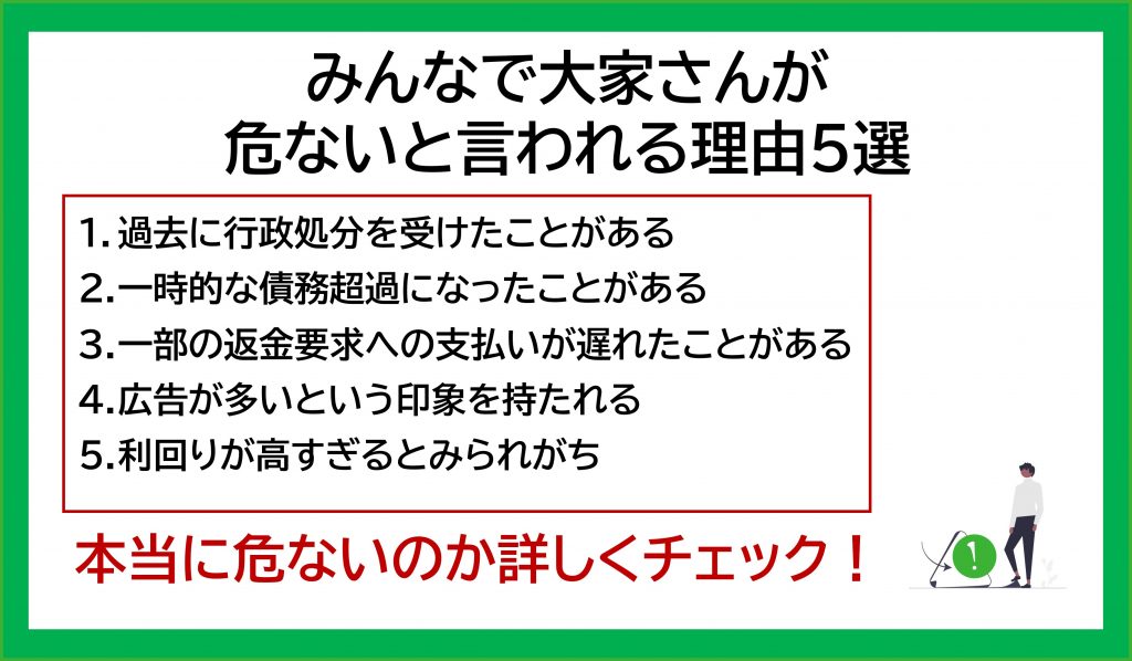 | みんなで大家さん(みんなでおおさやん)は、日本の個人投資家向けの投資商品の一つ。複数の不動産に分散投資を行い公開市場で取引される REITとは異なり、特定の不動産への投資を行うもの。 商品は、持株会社である共生バンクおよびグループ企業が不動産特定共同事業法に基づいて運用する。グループ企業にはファン… 5キロバイト (848 語) - 2025年10月18日 (土) 09:19 |