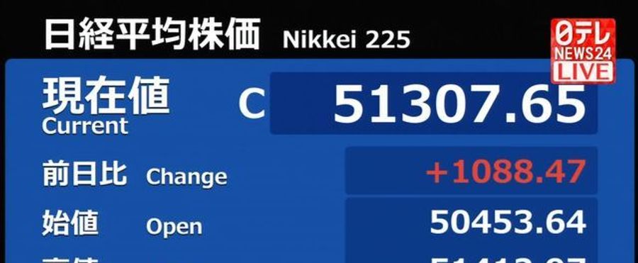 | 日経平均終値が初の5万1000円台、AI相場続く…1088円高の5万1307円 29日の東京株式市場で、日経平均株価(225種)の終値は、前日比1088円47銭(2・17%)高の5万1307円65銭だった。初めて5万1000円… (出典:読売新聞オンライン) |