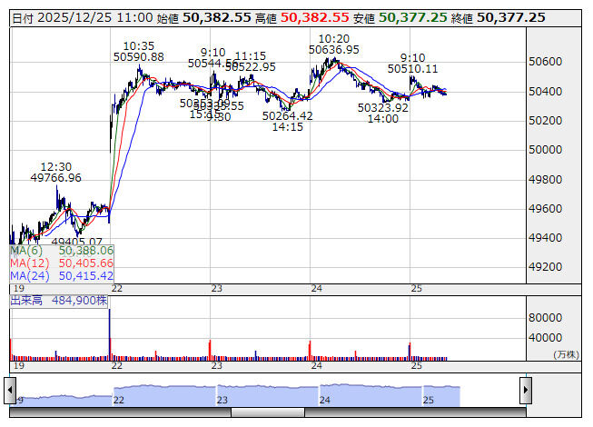 | 日経平均終値、342円高の5万750円…大型株上昇で2日連続の値上がり 26日の東京株式市場で、日経平均株価(225種)の終値は、前日比342円60銭(0・68%)高の5万750円39銭だった。2日連続で値上がりした。 (出典:読売新聞オンライン) |