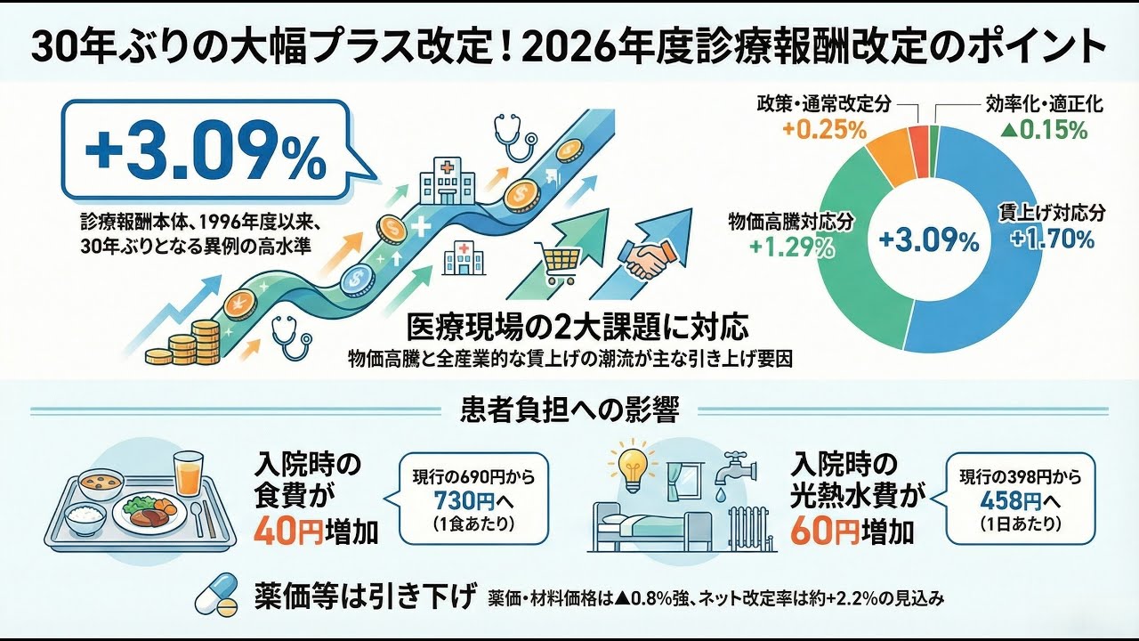 @minikurowa外来、入院患者の負担増へ 物価高に対応(共同通信) news.jp/i/138228083192… 厚生労働省は9日、診療報酬の2026年度改定で医療機関の経営悪化につながる物価高への対応として、外来受診費や入院費の患者負担を増やす方針を明らかにした。26年6月から始める見通し。